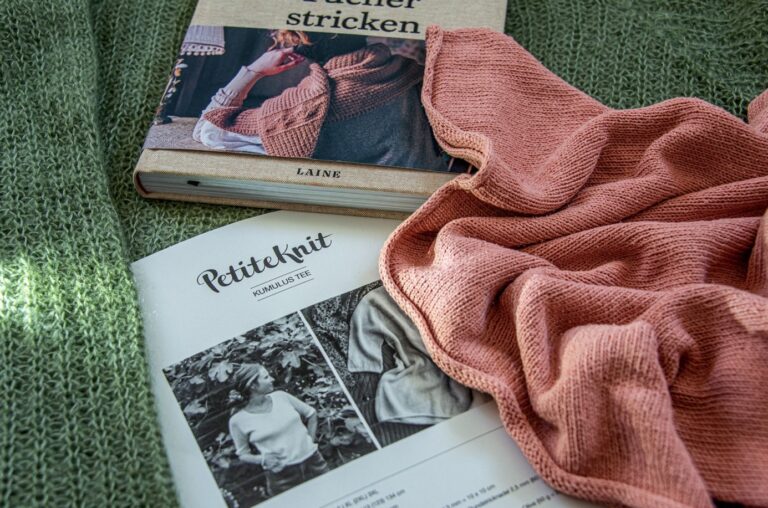 mette okkels ist die designerin hinter petiteknit. die sehr gut verständlichen anleitungen zu den schlichten, nordisch inspirierten modellen gibt es einzeln zu kaufen. anspruchsvollere techniken werden auf der petiteknit-webseite in videos erklärt. auf ravelry.com finden sie eine riesige auswahl an anleitungen – wir unterstützen sie gerne beim herunterladen. zum anschauen hat es eine kleine auswahl an magazinen und inspirierende bücher, die im bücherfass schräg gegenüber erhältlich sind.